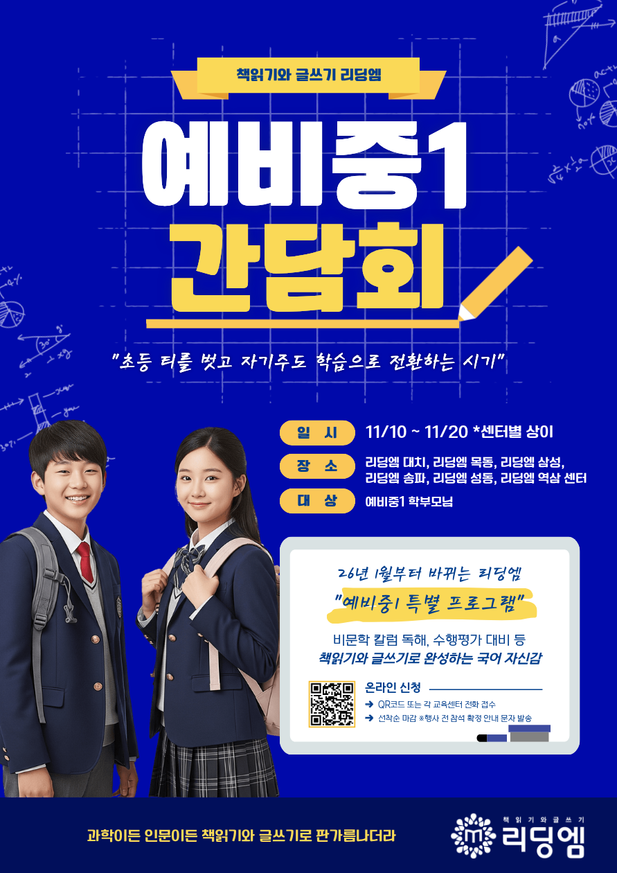 리딩엠, 예비중1 학부모 간담회 개최 <책읽기와 글쓰기로 다지는 중등 국어 완성>